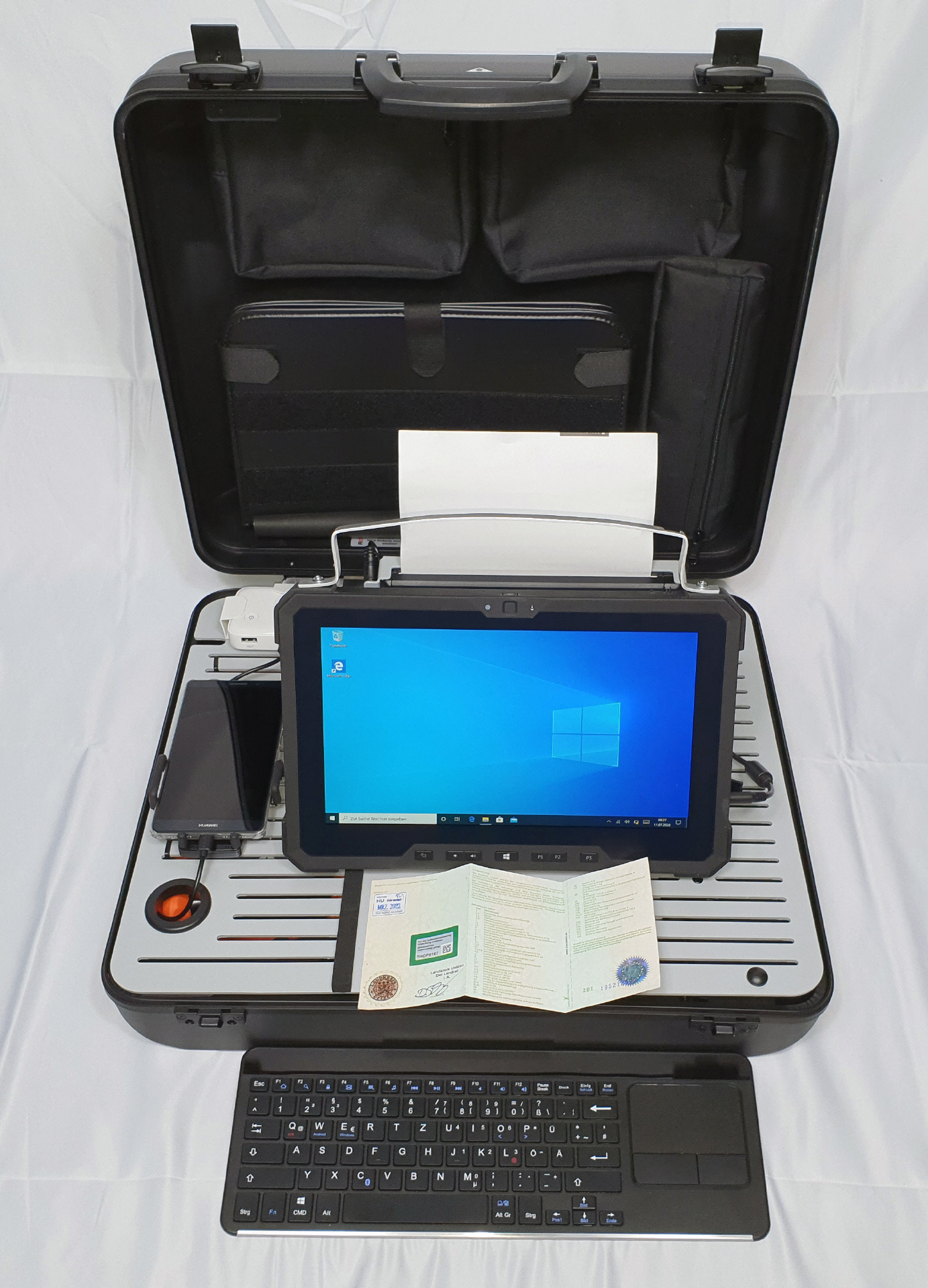 | Ausführung | Intebral Kofferschale, Alu-Profil, ABS-HSX superleicht, Gewicht inkl. aller Komponenten mit BROTHER PJ-Drucker ca. 10,3 kg |