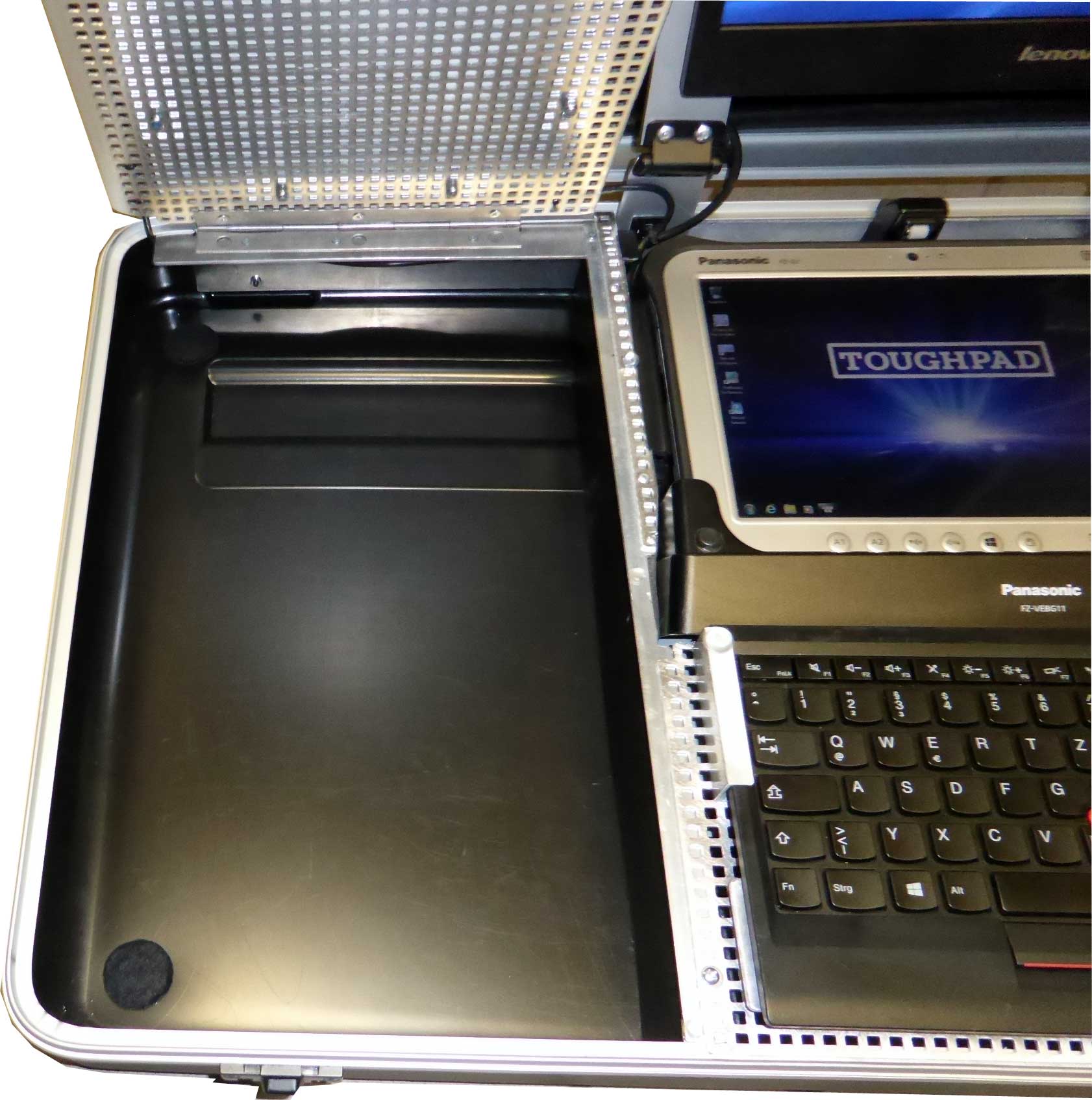 Der PX-G1 Systemkoffer für das Panasonic Toughpad FZ-G1 setzt Maßstäbe in Ergonomie und Ausstattung. Eine modifizierte aktive PANASONIC Docking-Station bildet das Herzstück für die vielfältigen Konfigurationsmöglichkeiten. Ein zusätzlicher, schwenkbarer Display und eine entnehmbare Tastatur bietet dem Anwender einen hohen Bedienungskomfort. Idealerweise für die elektronische KFZ-Prüfung und technische Industrie-Revisionen geeignet.